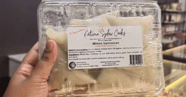Authentic Cape Malay samoosas handmade in partnership with Fatima Sydow. Each samoosa is seasoned with her signature spice blend and filled generously for bold, traditional flavour. No soy or fillers. Only quality ingredients wrapped in crisp homemade samoosa pastry.